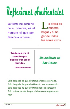 La tierra es nuestro hogar y el ho- gar de todos los seres vivos. Tú debes ser el Sin ambiente no cambio que hay futuro. deseas ver en el mundo . Mahatma Gandhi Página 12 ¿Qué crees..?